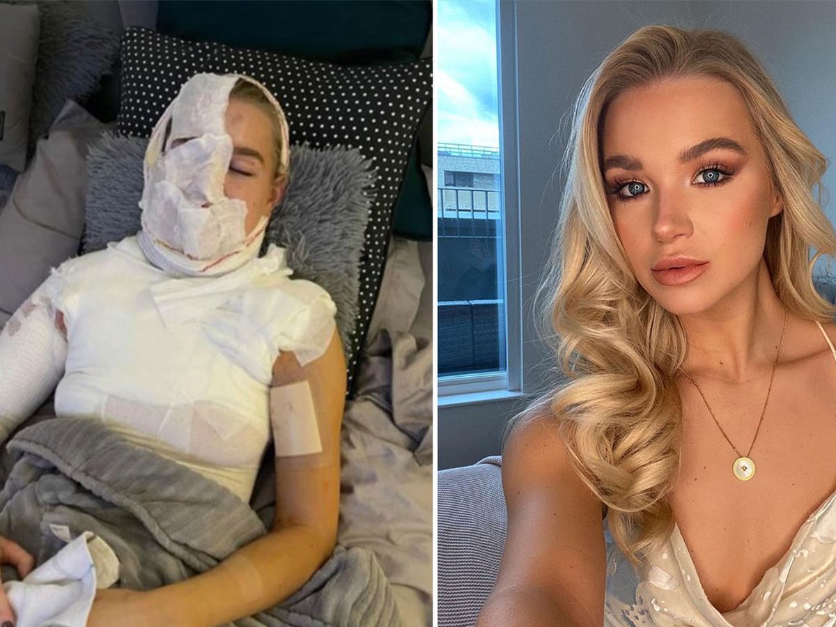 But in the process, the bottle exploded right in front of the blonde's face, resulting in severe burns to her face.